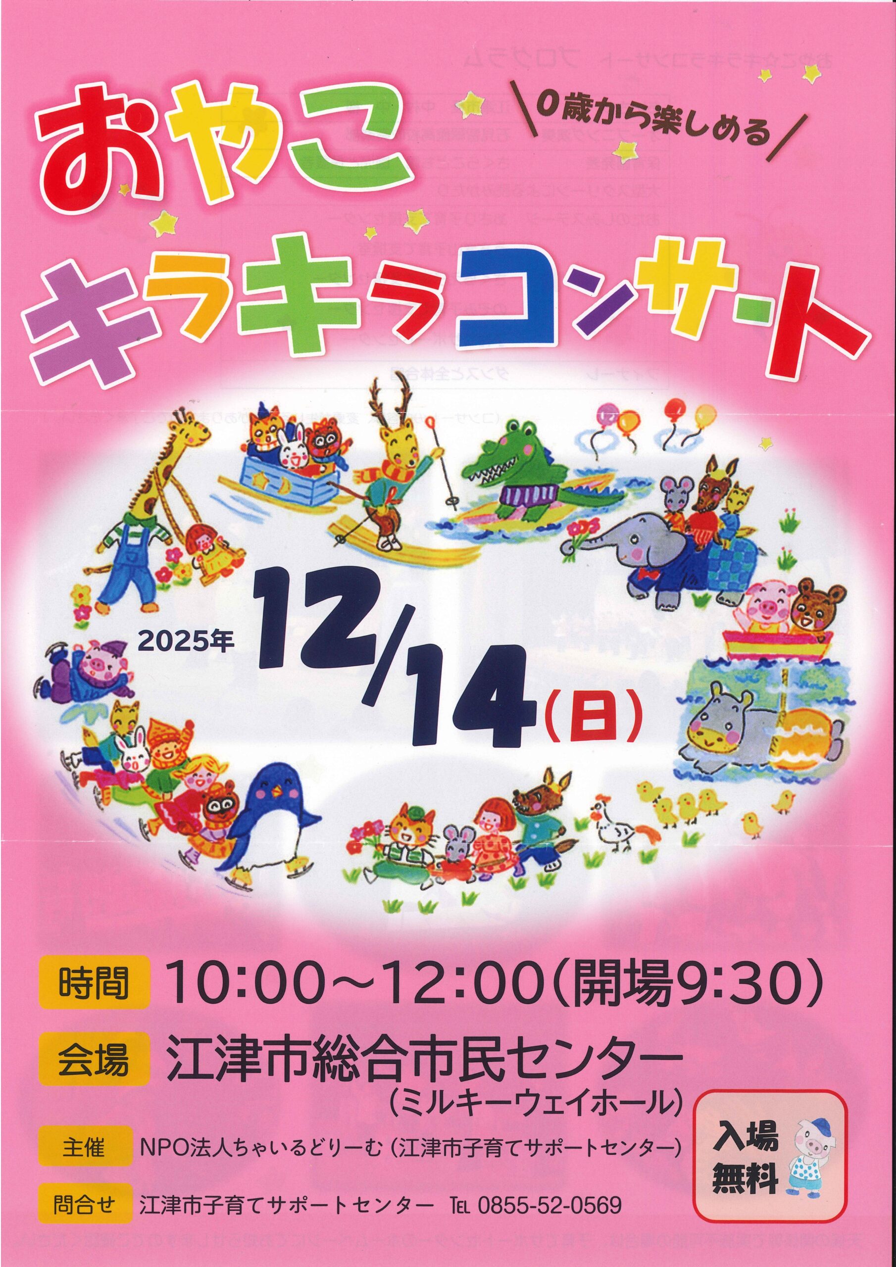 | 問い合わせ先 | NPO法人ちゃいるどりーむ 江津市子育てサポートセンター TEL 0855-52-0569 |